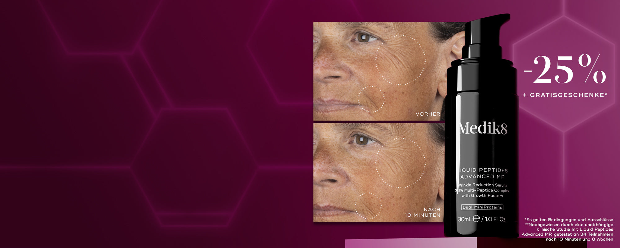 Im Zentrum unserer kollagenfördernden Innovation steht Growth Factor MiniProtein™, das die Produktion von Kollagen, Elastin und Hyaluronsäure unterstützt – für eine glattere und festere Haut. In Kombination mit dem Anti-A.G.E.-Peptid und dem NAD⁺ Longevity Booster stärkt es die Hautstruktur und sorgt für langanhaltende Vitalität.