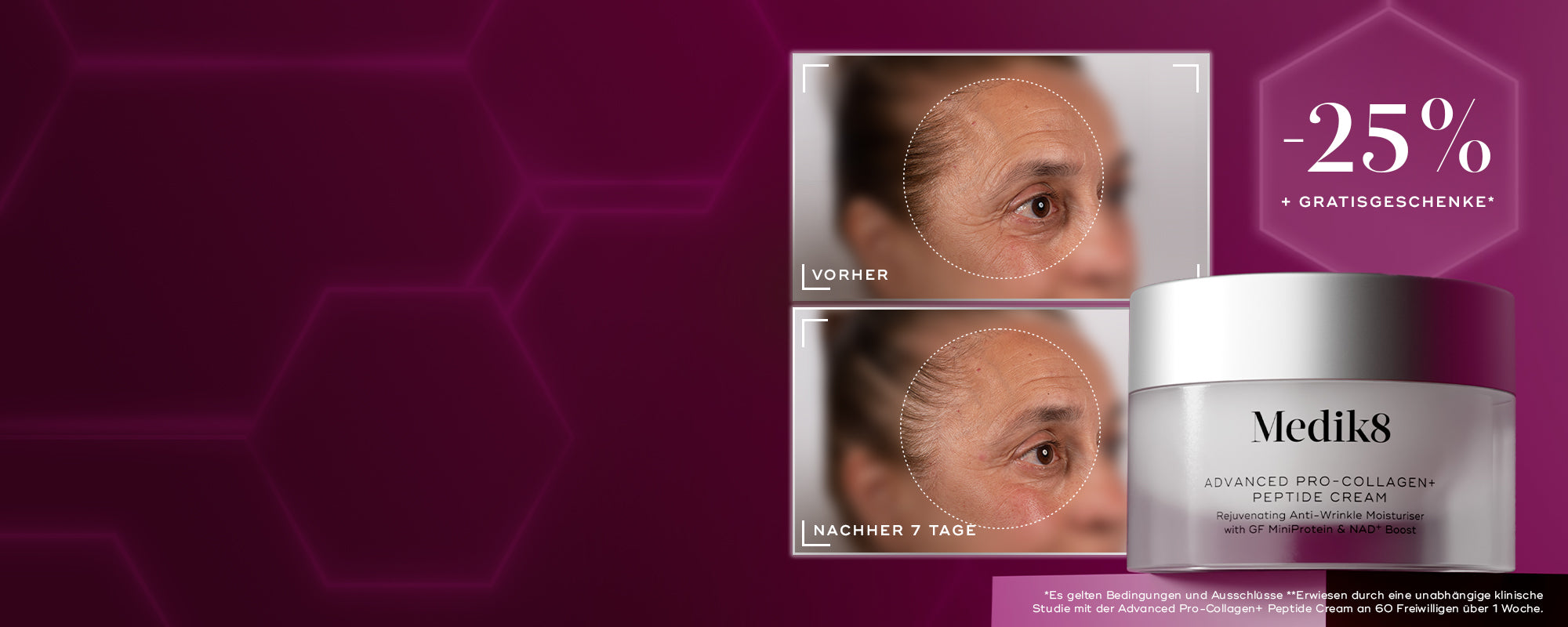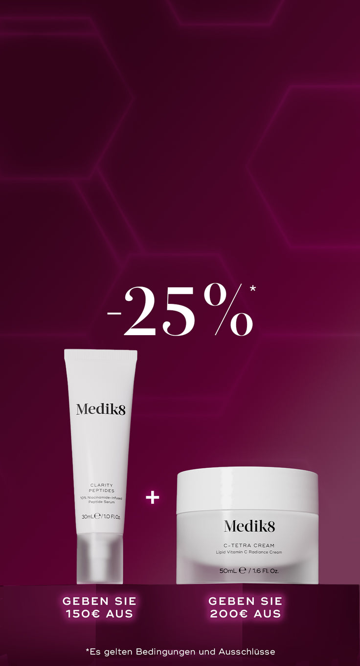 *Erhalten Sie 25 % Rabatt (Ausschlüsse gelten, siehe Ausschlüsse unten) und ein kostenloses Clarity Peptides, wenn Sie 150 € ausgeben. Außerdem erhalten Sie eine kostenlose C-Tetra Cream, wenn Sie 200 € ausgeben. Zusätzlich erhalten Sie 2 kostenlose Proben Ihrer Wahl, wenn Sie Crystal Plus- oder Crystal Deluxe-Kund:in sind – bei jeder Bestellung (Proben müssen im Warenkorb ausgewählt werden). Dieses Angebot ist gültig von 29. November 2025, 9:00 CET bis 2. December 2025, 08:30 CET. Es gelten die Allgemeinen Geschäftsbedingungen, siehe hier.