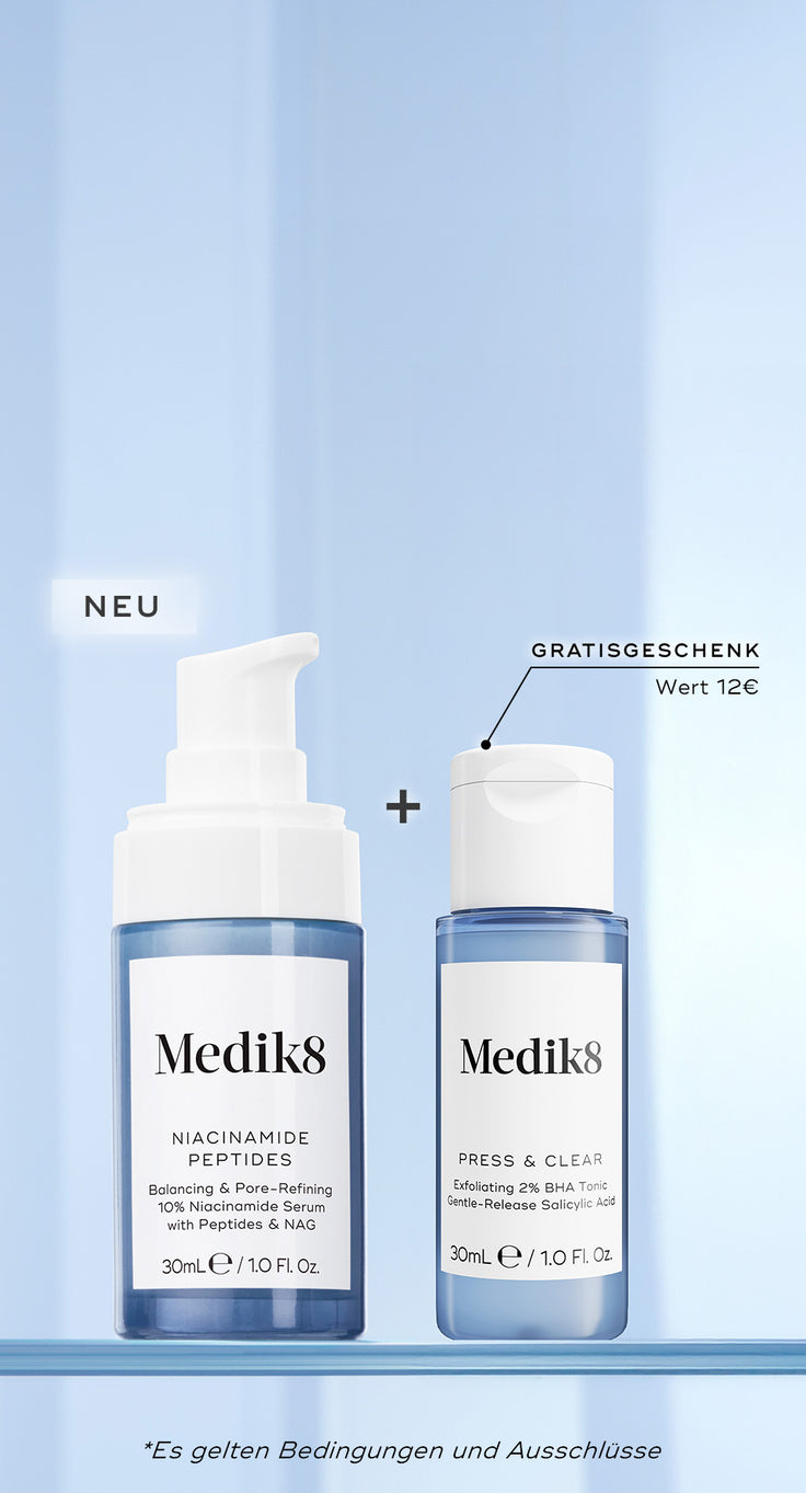mit sanfter Wirkstofffreisetzung", "price": "4200", "inventory_quantity": "629", "compare": "", "reviews_average": "", "reviews_count": "" } , { "id": "37830435045530", "id_product": "6138392674458", "title_product": "Press & Glow™", "title_variant": "Press & Glow™", "handle_product": "press-glow", "image_variant": "", "image_product": "//de.medik8.com/cdn/shop/files/20230922_-_PDP_Asset_1_-_Press_Glow_-_Packshot_-_DE.jpg?v=1749042159&width=512", "images_product": ["//de.medik8.com/cdn/shop/files/20230922_-_PDP_Asset_1_-_Press_Glow_-_Packshot_-_DE.jpg?v=1749042159&width=512" , "//de.medik8.com/cdn/shop/files/20230922_-_PDP_Asset_2_-_Press_Glow_-_Benefits_-_DE.jpg?v=1749042159&width=512" , "//de.medik8.com/cdn/shop/files/20230922_-_PDP_Asset_3_-_Press_Glow_-_B_A_-_DE.jpg?v=1749042159&width=512" ], "badge": "", "routine": "Morning/Evening", "size_variant": "200ml", "size_product": "200ml / 30ml", "tagline_variant": "Gentle daily exfoliating PHA tonic - Promotes a visibly smooth and glowing complexion", "subheading_product": "Tägliches Peeling-PHA-Tonikum mit Enzymaktivator", "price": "4000", "inventory_quantity": "970", "compare": "", "reviews_average": "4.6", "reviews_count": "9.0" } ] } ], "translations": { "quickview":"Quick View", "add_to_cart":"Add to Bag", "compare_label":"", "view_bundle":"View Bundle - Need Translation" }, "theme_settings": { "show_sale_label": "false" } }