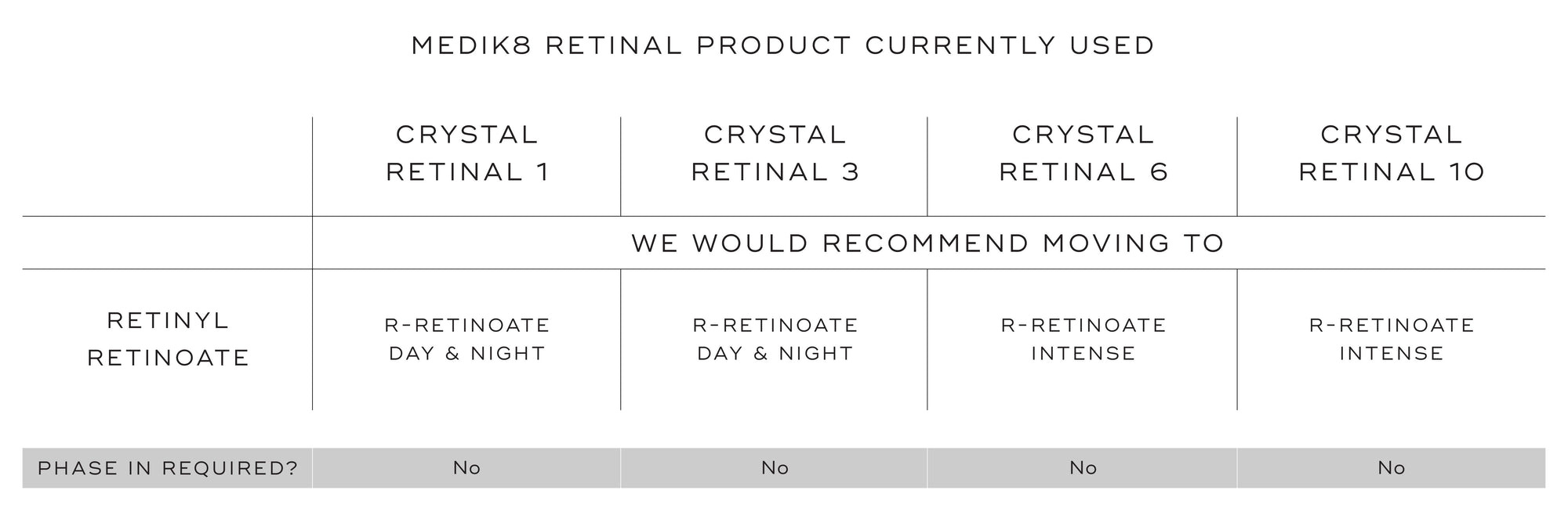 Note: Phase-in is not required to move from Crystal Retinal to our r-Retinoate line.