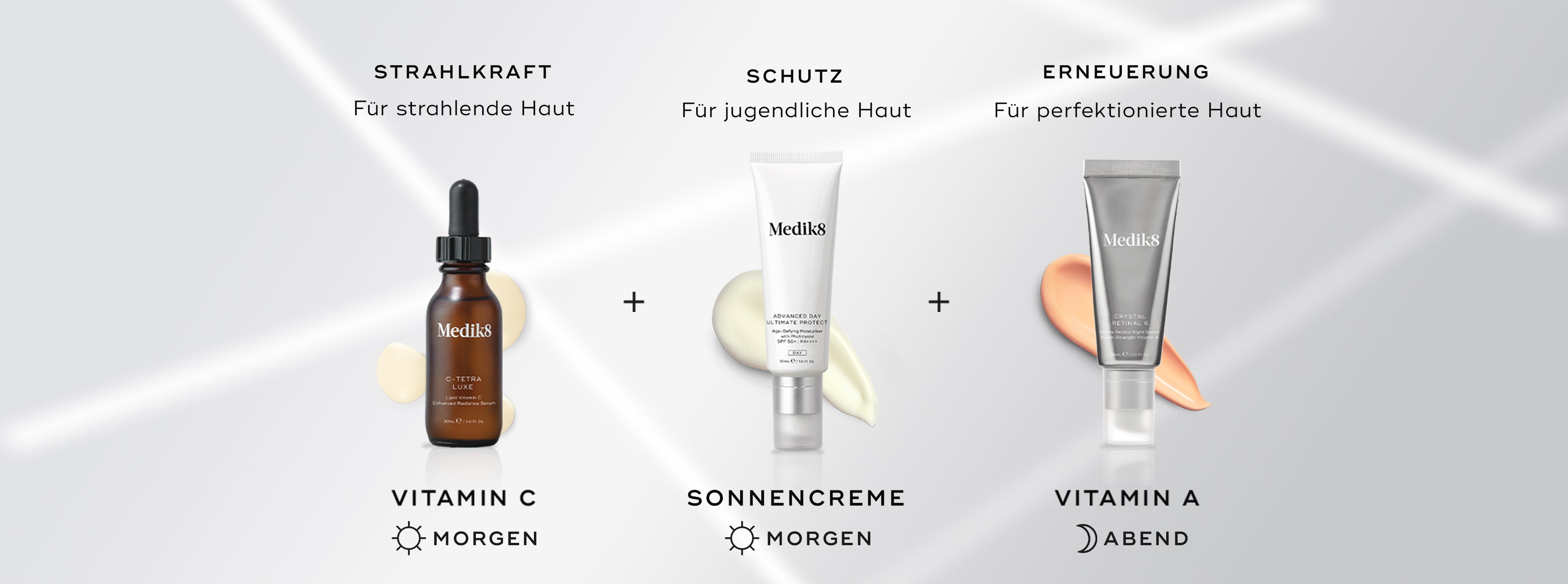 Sie wissen nicht, wo Sie mit Ihrer Hautpflege anfangen sollen? Entdecken Sie den einfachen, klinisch erprobten Ansatz für eine jugendliche, strahlende Haut - sowohl sofort als auch im Laufe der Zeit. Es ist so einfach wie die Verwendung von Vitamin C plus Sonnenschutzmittel am Morgen und Vitamin A (auch bekannt als Retinol/Retina) am Abend. Wir nennen dies die CSA-PhilosophieⓇ. Wir bei Medik8 sind der festen Überzeugung, dass jede gute Hautpflege mit diesen 3 grundlegenden Formeln beginnen sollte. Lassen Sie uns Ihnen zeigen, warum...