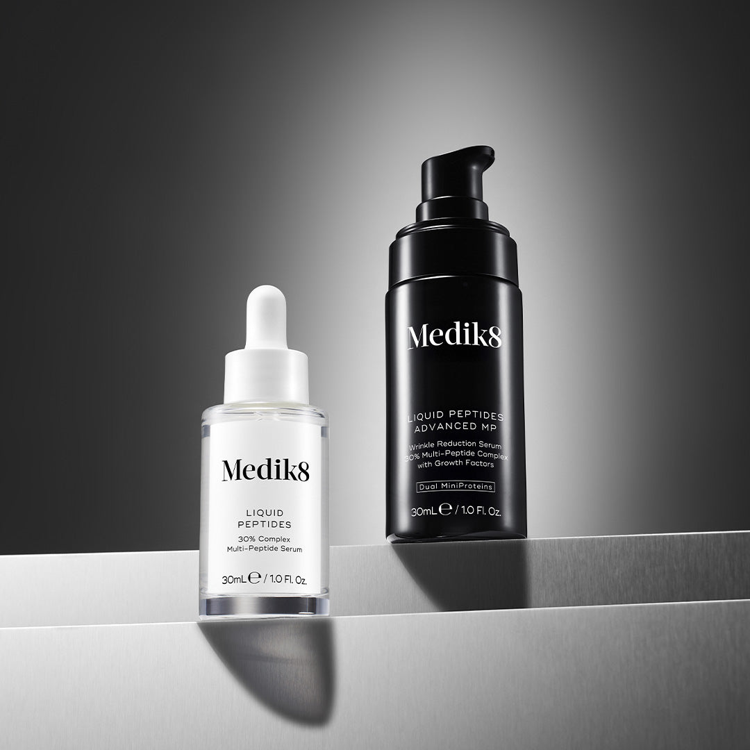 [1] Dieses ultra-feuchtigkeitsspendende Serum wurde in einer unabhängigen klinischen Studie über Liquid Peptides Advanced MP an 34 Teilnehmern in 10 Minuten und 8 Wochen getestet. Besuchen Sie medik8.com/LPA-claims für weitere Informationen